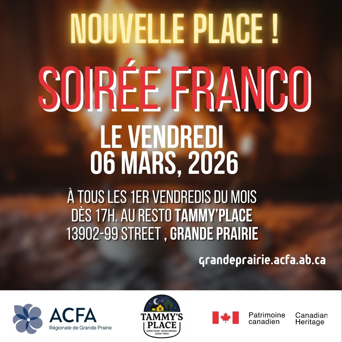 06mar5:00 pm9:00 pmSoirée FrancoTammy's Place, 13920 99 St5:00 pm - 9:00 pm(GMT-07:00)