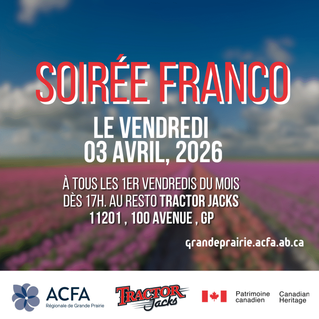 03avr5:00 pm9:00 pmSoirée FrancoTractor Jack's, 11201 100 Ave5:00 pm - 9:00 pm(GMT-06:00)
