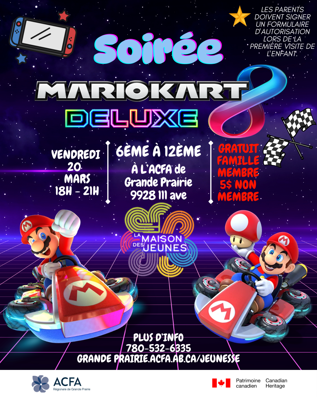 Pour plus d’information, vous pouvons nous contacter à administration.grandeprairie@acfa.ab.ca ou au 780-532-6335.